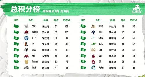 【Krafton Inc.旗下PUBG工作室】奋勇争先,龙吟四海!2022年绝地求生冠军联赛(PUBG CHAMPIONS LEAGUE,简称“PCL”)春季赛常规赛的第三周比赛已经结束。本周已临近尾声,各战队将运筹帷幄,把握好每个得分点,力争在接下来有限的比赛中以更高的积分冲击榜单!