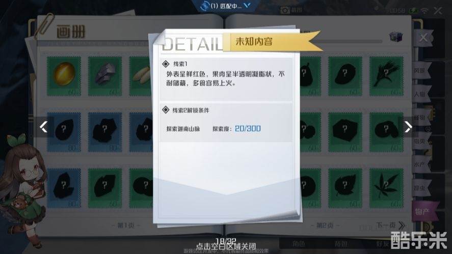 如上图所示,点开画册中的荔枝会显示线索,探索迦南山脉,咱们就能把找寻的目标放到迦南山脉,有目的有范围的去寻找就会很容易。