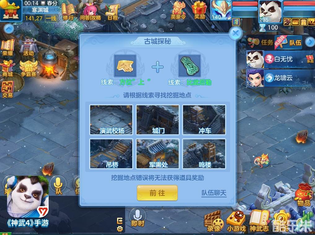 人烟稀绝烽火冷,百战残存寒渊城。新地图【寒渊城】现已开放,少侠等级达到50级后,队伍人数达到3人前往昆仑山寒渊城传送阵(32,11)处,完成组队挑战任务后即可前往。
