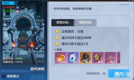 每日限制挑战一次,神装碎片每日也只能获得一次可以积累。
