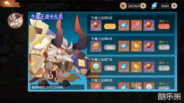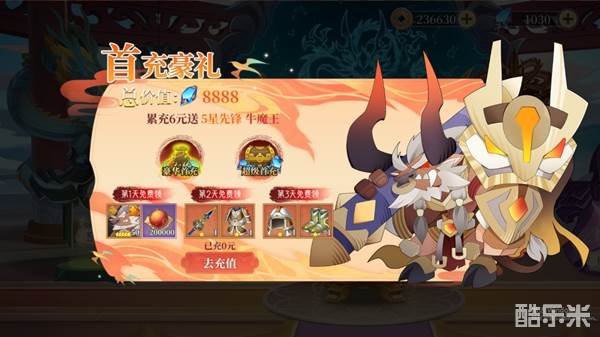 一套成熟的阵容坦克都是非常重要的,前排坦不住后排也打不出输出。首充礼包里的牛魔王就是前期比较容易能获取到的最强坦克了,可以用很长一段时间。