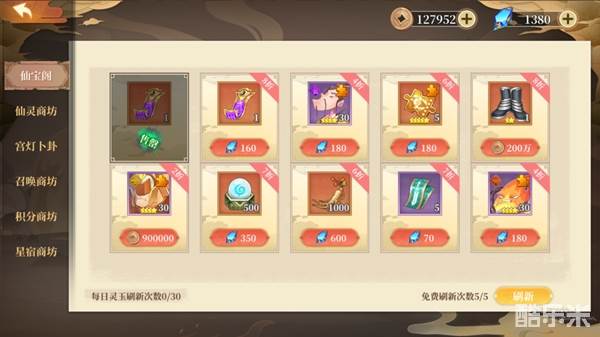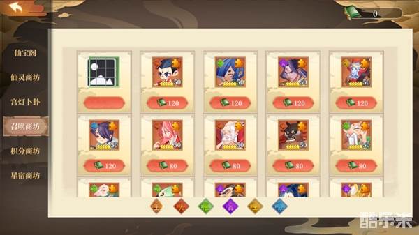 召唤商坊需要五行召唤卷碎片,这里能兑换的仙灵是很强的,最好是慢慢存不要乱花。
