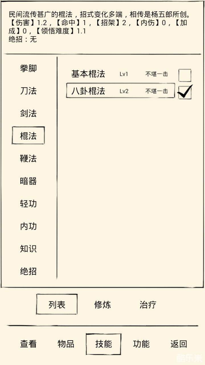 个人感觉八卦棍法不厉害,这棍要6111学读书。