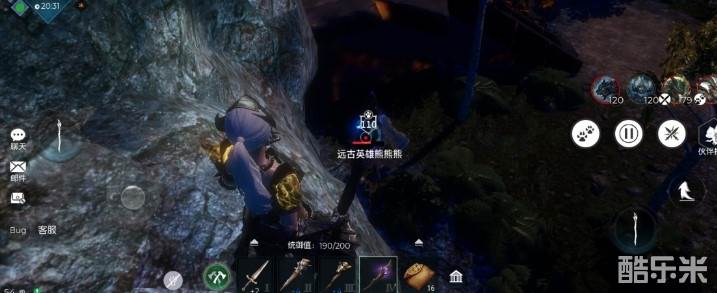 祭坛左边有一个可以跑上去的石头,但是熊熊熊上不去,先走近唤醒熊熊熊,再跑上去在上面用法杖慢慢刮痧就好,熊熊熊会掉落“巨疯”法杖,一个神器,大家快去杀掉熊熊熊抢夺这个神器吧!