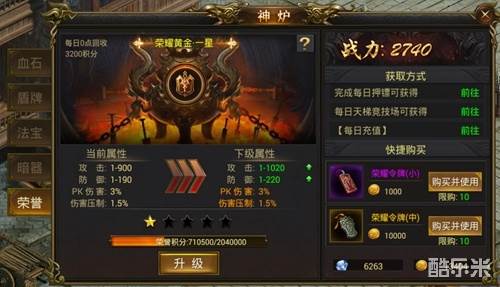 5、荣誉可快速提升战力,除了提高攻击和防御外,还能增加PK伤害和伤害压制。攻击荣誉低于自己的玩家,额外增加伤害。荣誉积分可以通过参加活动获得。