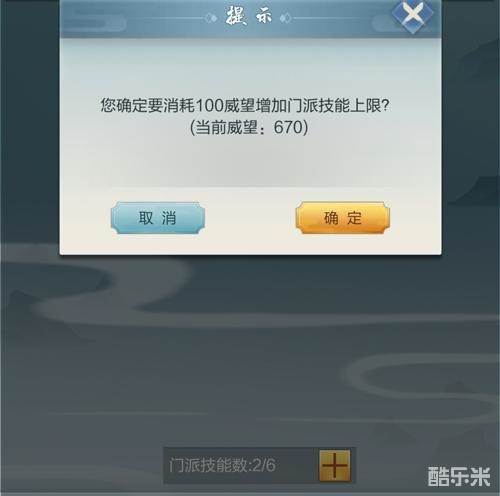 门派技能:是玩家加入门派后掌门传授学到的功法,门派技能有上限,起始上限是5,可以消耗威望来提升上限,也可以点击忘却,删除一些低级功法。