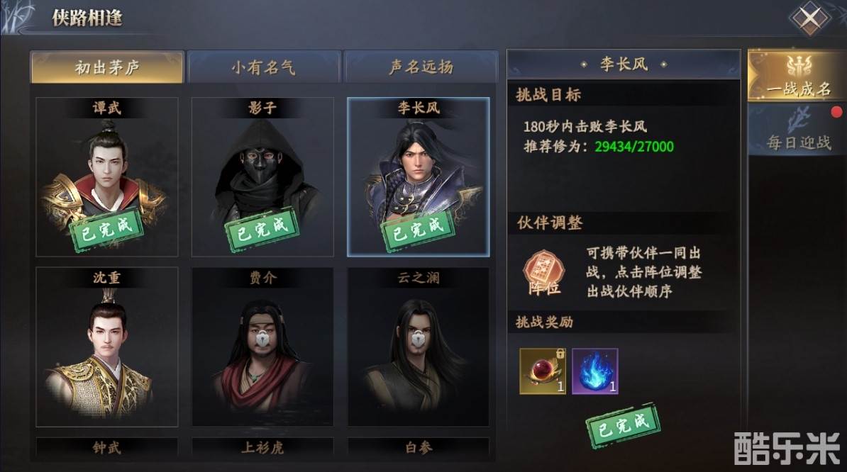 狭路相逢玩家带着伙伴180秒时间内,挑战原作中出现的各路高手,有一战成名和每日迎战两种形式。