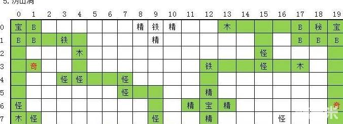 这关的地图如下图,出口在右下角,关卡有4个宝箱,每走1步消耗2个食物,建议玩家可以拿宝箱刷精英怪,这关的灵石比较多,基本每个怪物都会出2个左右的灵石,炼丹炼器材料一般。可以看到地图中有3个奇遇哦。