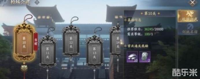 3.【校场会武】如图所示是一个“爬塔”玩法,玩家带着自己的伙伴上阵,每个关卡的限定时间消灭所有敌人,每五关挑战一个BOSS,其余关卡均为杂兵。可以获得砂铁,以及升级伙伴的青云佩等道具。校场会武是一次性活动,已通关关卡不会再刷新,每天看心情刷几关就行啦。