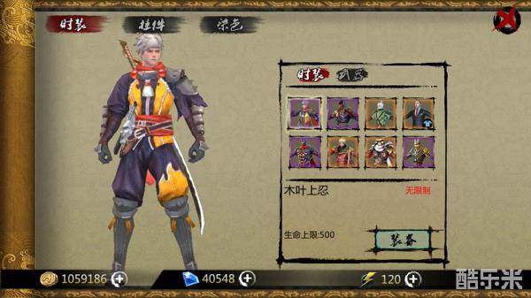 时装总体上有服装和武器,这套鬼舞装甲霸气非常,同时配上太刀,成为隐藏在黑暗中的武士。