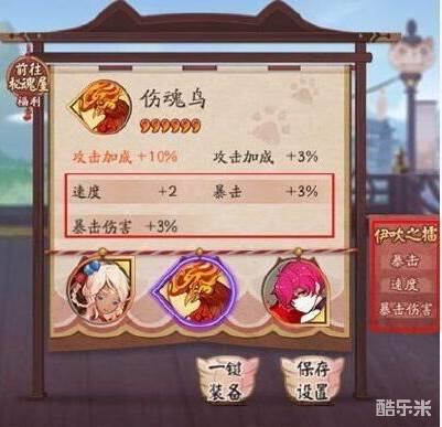 本期指定的副属性为速度、暴击、暴击伤害,因此推荐携帶的御魂尽量三条副属性都有,这样强化到指定属性的机会比较大,更容易获得福运,贏得排名奖励。