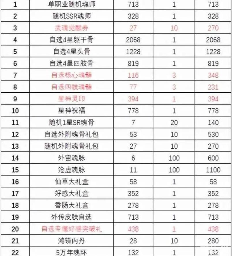 首先武魂觉醒券这玩意永远都不过时,即使大家资源非常不足,都建议大家可以去把最少这10张武魂觉醒券给兑换了,总共270碧琼佩其实最低只需要花费540钻石即可兑换到,换算下来就是54钻石一张武魂觉醒券,性价比还是非常高的