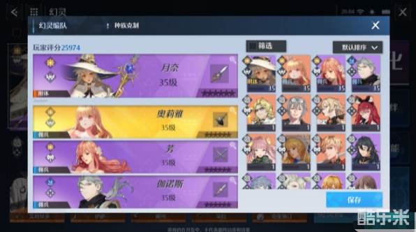 推荐阵容一:月奈、奥莉雅、芳、伽诺斯