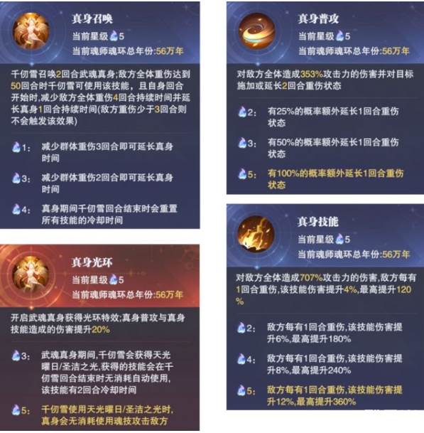上面是千仞雪的六翼天使真身的四大技能效果。