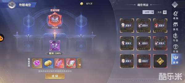 2、为方便玩家对外附魂骨进行调整,外附魂骨支持重铸功能,重铸后可返还全部养成材料以及外附魂骨本体。