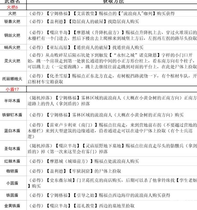 艾尔登法环全盾牌火把收集攻略。