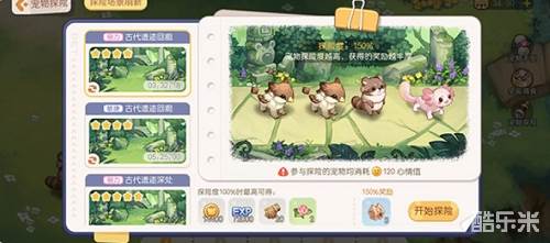 ②探险场景随岛建等级逐渐开放,最多同时派遣5队宠物外出探险。