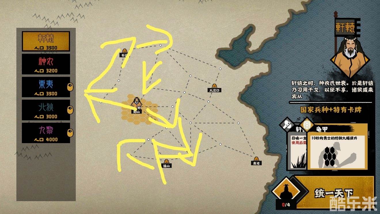 进攻方向大致为南北两边同时进攻,先拿下北方,再把神农给灭了。右边的东夷前期有点打不过。