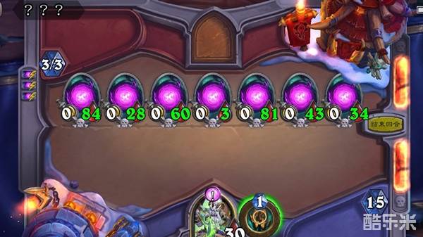 2、第一回合直接点击结束回合,然后每个随从会获得一个新的生命值,找到新的对应位置。