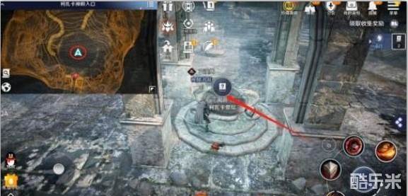 4.柯扎卡祭坛:柯扎卡神殿入口,下图红色圆圈为大致位置,箭头指引为道具所在