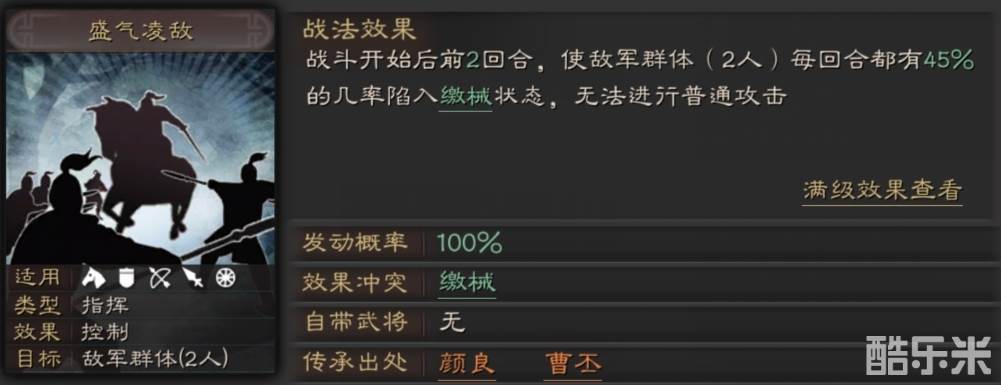 前2回合使敌军2人每回都有几率陷入缴械状态。