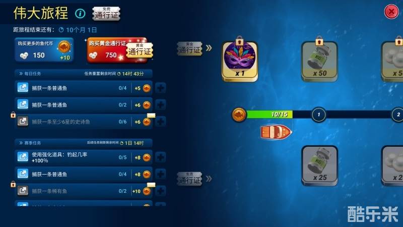 除此之外,首次推出的“通行证”玩法也别有新意,随着垂钓生涯的不断前行,通行证将伴随着我们共同成长,在每个精彩而难忘的成就达成时获得更多奖励!积分获取的方式非常巧妙,只需完成每日更新的挑战任务,就能够获得通行证积分;如果积分溢出,还能兑换游戏内的各种垂钓物资,更有通行证限定皮肤奖励等待解锁!助力垂钓旅程、获得更多乐趣!