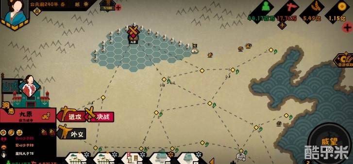 还有,一点一点占土地(进攻)你如果觉得慢的话就决战吧(一次赢了就行);