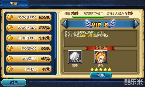 成为VIP后可以对关卡进行扫荡,省去大量时间来获取更多的战利品。VIP还能做到诸如增加特训席位,增加购买体力次数,领取VIP奖励,获取VIP专属英雄等。