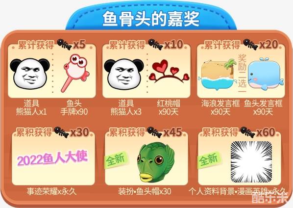 2、“鱼骨头的嘉奖”各项奖励最多只能领取一次。