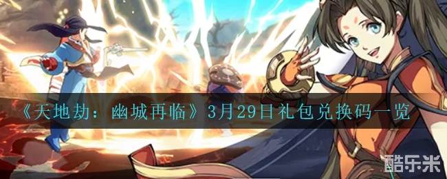 天地劫幽城再临3月29日礼包兑换码一览!天地劫幽城再临的官方给玩家准备了许多福利,发放了许多礼包兑换码,很多小伙伴都很想知道天地劫幽城再临3月29日礼包兑换码是什么,今天小编给大家带来《天地劫:幽城再临》3月29日礼包兑换码一览,感兴趣的小伙伴们一起来看看吧。