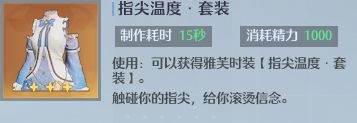 和幻灵芳好感度满了后,系统会以邮件形式赠送服饰图纸,收到图纸后需要自己收集材料,在生活---裁缝中制作服饰。服饰需要材料如下: