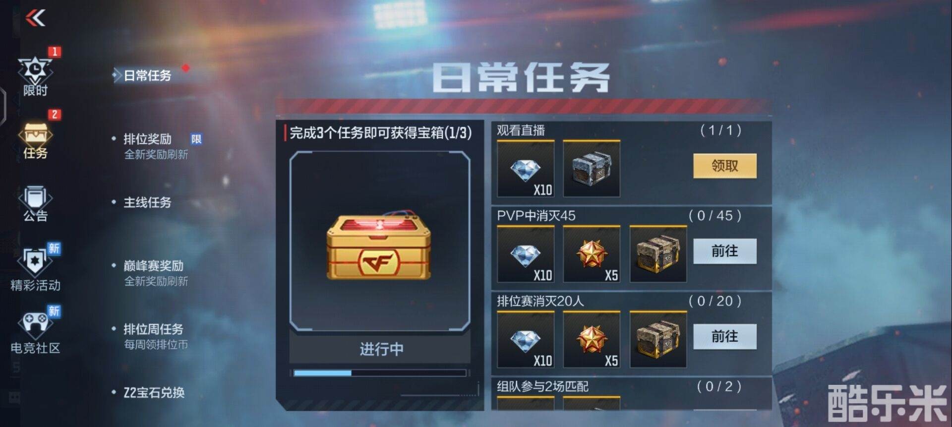 2:排位赛消灭×人+爆头消灭×次+组队匹配2局+观看直播