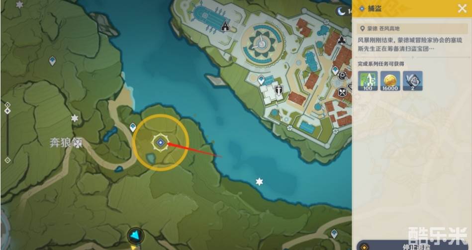查看任务:风暴刚刚结束,蒙德城冒险家协会的塞琉斯先生正在筹备清扫盗宝团....