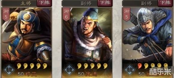 组合三个武将同是魏阵营武将,可以获得额外的属性加成,组合推荐配骑兵或者弓兵兵种。组合由邓艾和夏侯渊两个输出控制兼备的武将负责攻防的均衡,庞德在其中可以当核心输出使用。