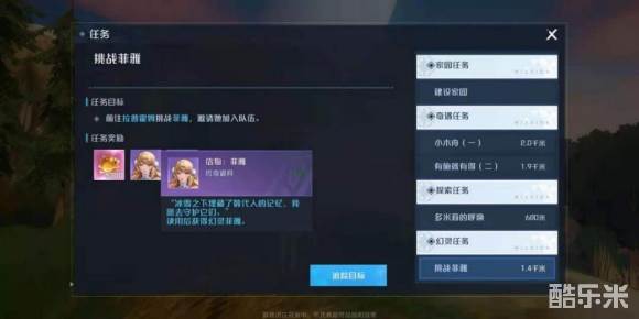 支线任务类别多四个,分为:[家园]任务、[探索]任务、[幻灵]任务、[奇遇]任务。