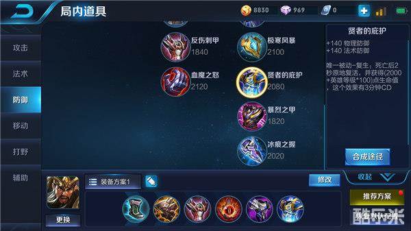关羽的操作难度挺高,为了提高关羽的容错率,最后一件选择贤者的庇护。让关羽进入人群中冲锋一波后可以继续站起来收割残局。