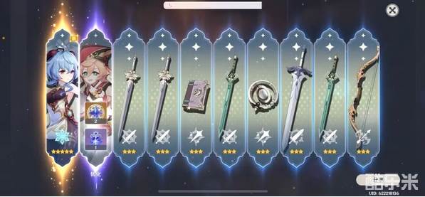 其次是冬极白星(5星弓当中少数对于甘雨有较大BUFF的弓),然后是天空弓(至少含有674基础攻击力和64双暴分),最末尾的是飞雷之弦震(因为对重击毫无加成,对于甘雨就是纯粹的白值武器)