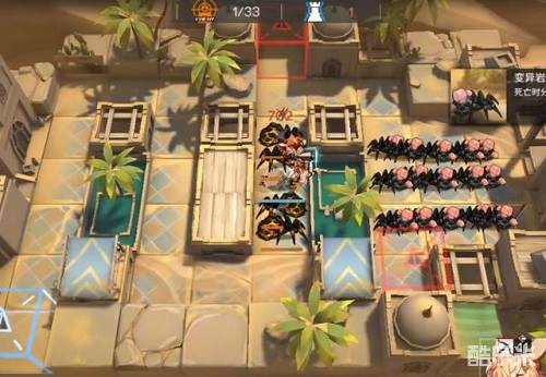 3、下路部署米格鲁挡住分裂熊,之后先再次空投槐虎沉默自爆蜘蛛,然后高台部署克天使还有奶妈,冲右侧攻击,即可,这样把中间的这些自爆蜘蛛全部搞定了。