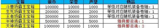 每个赛季结束后,排名越高,所获得的奖励也就越好,每个阶段的第一名,将获得特殊奖励。奖励如下:
