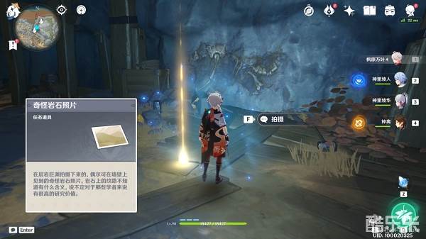 在层岩巨渊地下矿区,我们有时会在墙边看到“奇怪的图案”,靠近后可以通过拍摄照片的方式记录下来,并获得 「奇怪的岩石照片」。