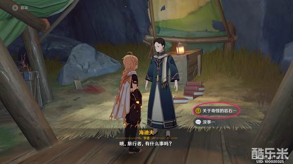 持有任意一张 「奇怪的岩石照片」,即可与学者海迪夫对话,触发任务「古代生物调查」。
