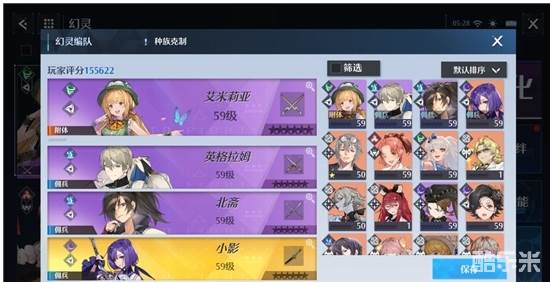 适合PVP场的组合,控制效果拉满,艾米莉亚减速伤害打硬控,最后由小影和北斋两人收割人头。除此之外,全员影舞能让全队经常性得保持在一个识破对手强化伤害的状态。