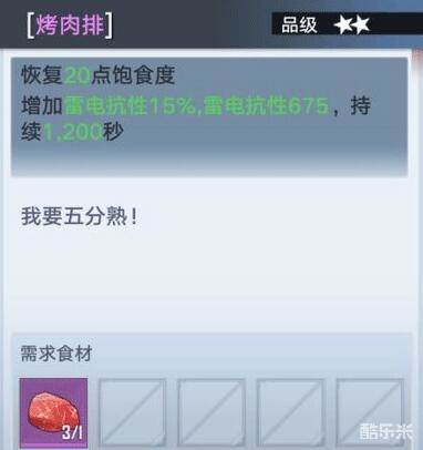 效果:可以帮助我们增加20点饱食度,增加雷电攻击2%,雷电攻击120,持续1200秒。
