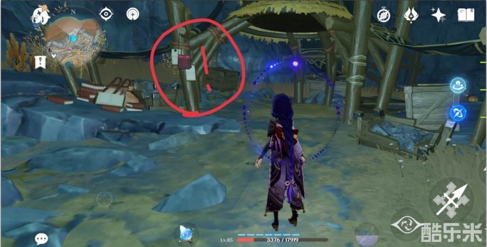 (2)第二张藏宝图在如图所示地点的盗宝团据点处,上去把盗宝团打完后在他们帐篷的柱子上。