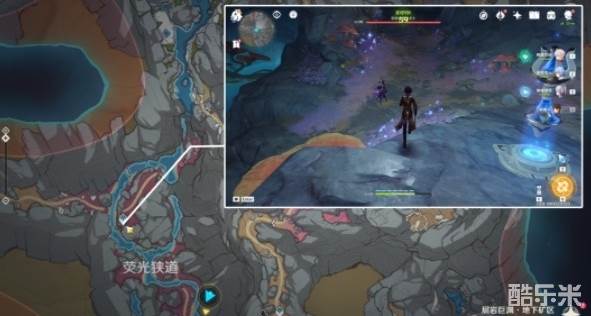 在层岩巨渊地下矿区的荧光狭道传送点旁,我们会遇到一个落单的愚人众雷莹术士,本着本旅行者心中贯彻的正义,走,我们欺负欺负她。(事实上我们只是路过,是她先动的手)
