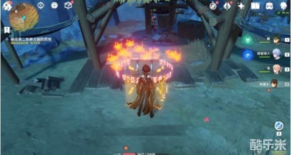 引爆旁边的炸药桶或用火元素角色,可以点燃帐篷下的茅草。
