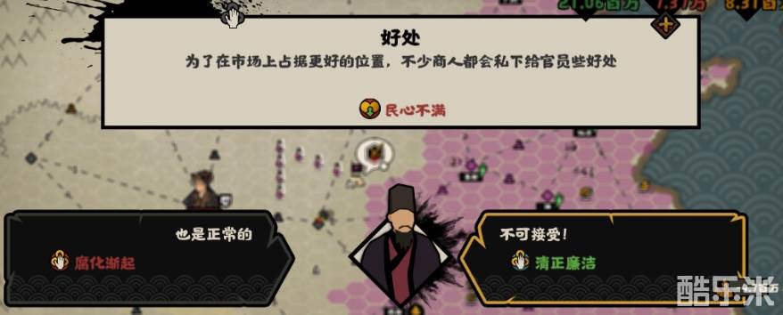 在一些随机事件的选择上,有降低腐化的选项哦~