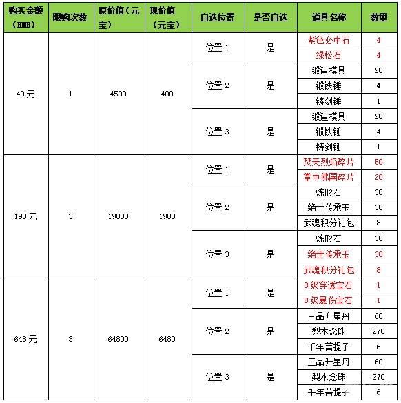 暗器魂石礼包:必定获得【魂石转化符】*1,随机获得【一品冰魂石】【一品润魂石】【一品炽魂石】【一品灿魂石】【一品坤魂石】或【一品圳魂石】。