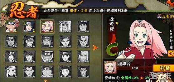 忍者少女小樱比较适合近距离的拉扯,推荐携带真空波加强远程起手能力,或是携带气旋来打反手。