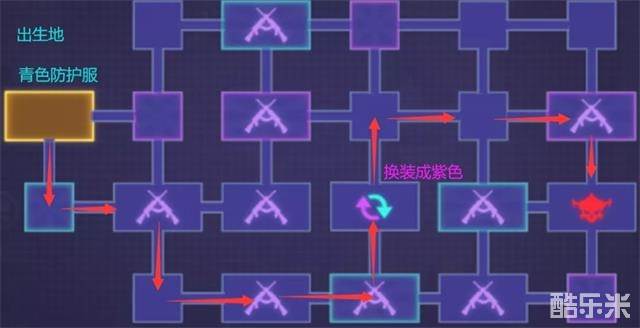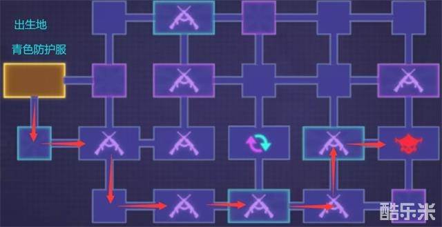 如果出生地装备的是青色防护服,又想少经过战斗区域,那么就要考虑中途换一次防护服颜色了。